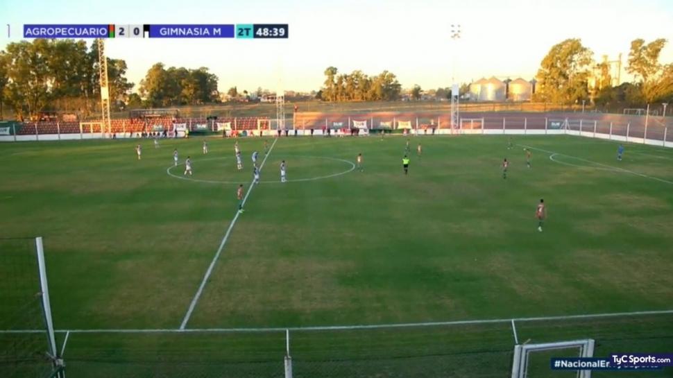 CONTUNDENTE. Durante los últimos minutos del juego con Agropecuario, los jugadores de Gimnasia se quedaron parados en el campo, en señal de protesta. .