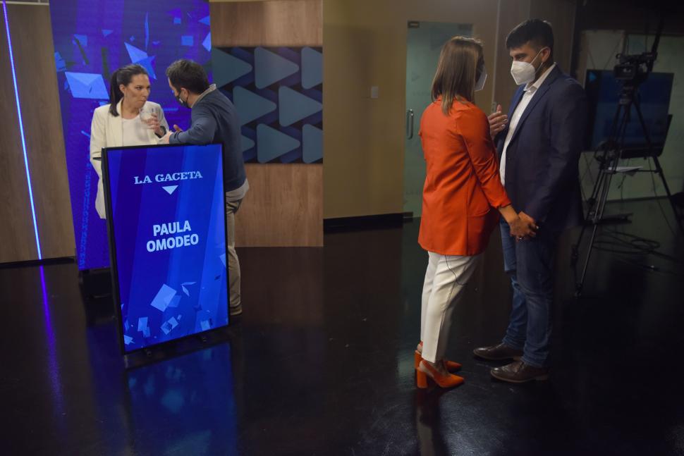 EN EL ENTRETIEMPO. Las precandidatas atienden a sus colaboradores. LA GACETA / FOTO DE JUAN PABLO SANCHEZ NOLI