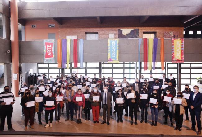 Durante los meses de julio y agosto, alrededor de 350 alumnos y alumnas mayores de 18 años pudieron finalizar los talleres de: Soldador Básico, Herrería, Auxiliar de instalaciones sanitarias y de gas domiciliario, Auxiliar en instalaciones eléctricas domiciliarias, Montador domiciliario de equipos acondicionadores de aire y equipos frigoríficos, Auxiliar de mecánica de motos, Vitrofusión y Gastronomía. El ministro de Educación, Juan Pablo Lichtmajer, acompañado por el director de Educación Técnica, Daniel Vega, y el coordinador de las ATM, Carlos Jiménez, encabezó la entrega de certificados para quienes finalizaron estos trayectos.