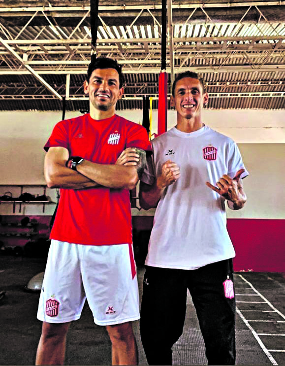BUENA CARA. “Tino” Costa posa sonriendo junto al kinesiólogo Damián Solís, luego de un día de trabajo de recuperación.