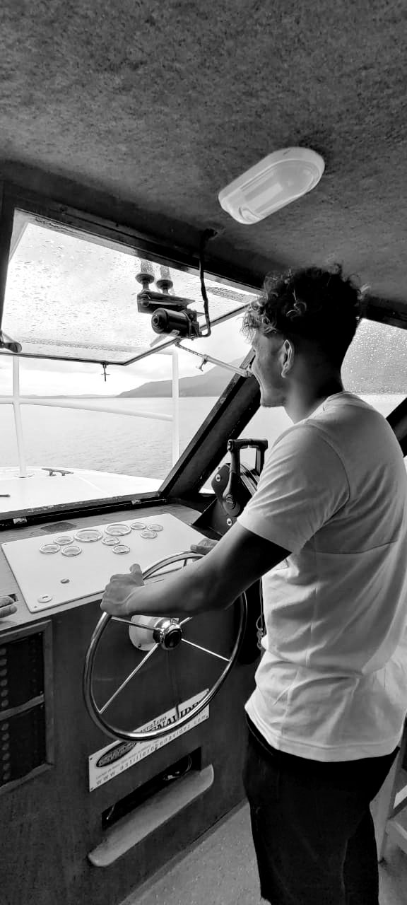 “CAPITÁN” DIARTE. Lucas tomó el timón de la lancha en la que paseó el plantel. Foto Gentileza de Alejandro Cruz