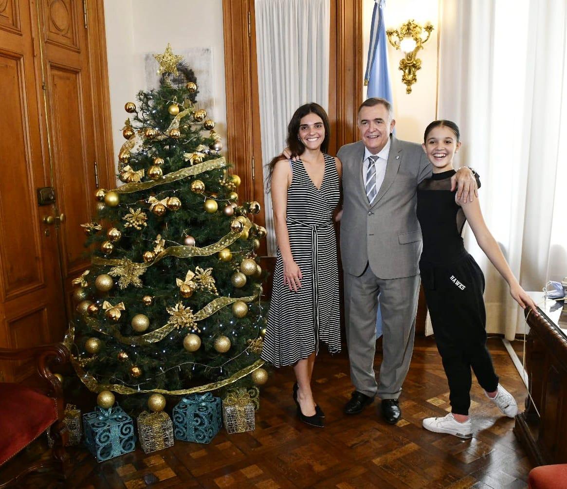 EN CASA DE GOBIERNO. Jaldo, junto a Milagros y a su mamá, Andrea. Foto: Prensa Gobernación