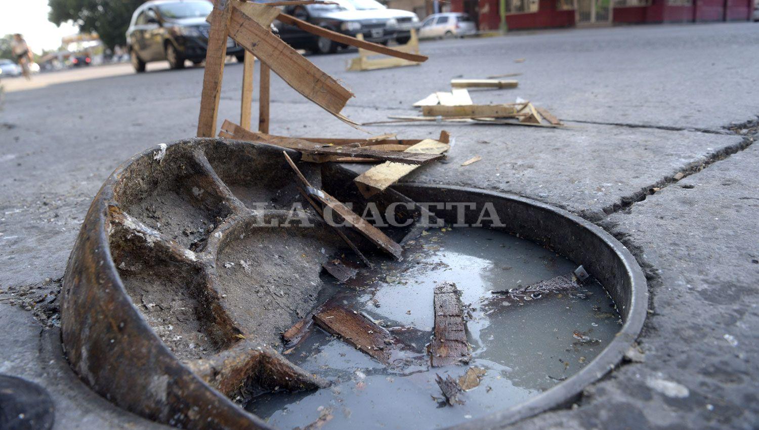 PELIGRO PARA EL TREN DELANTERO. En San Juan al 2.400, las tapas mal colocadas de los drenajes en las calles representan un riesgo para los automóviles y motocicletas que recorren a diario la ciudad.