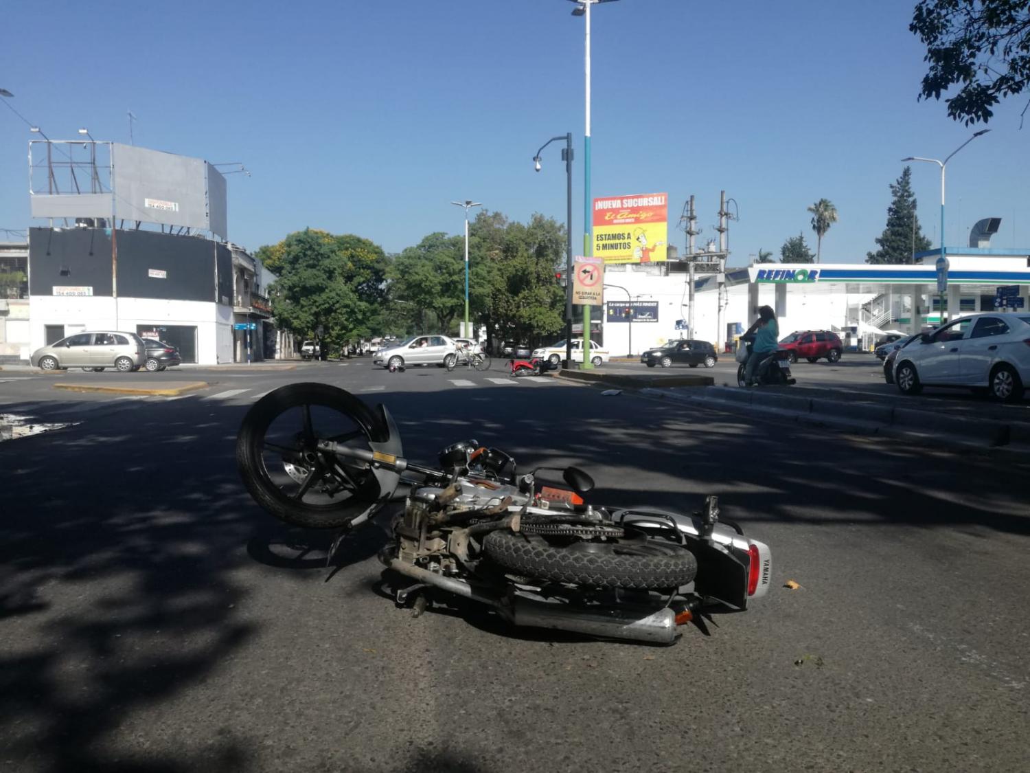 Un violento siniestro vial se produjo esta mañana entre dos motos y un automóvil en el cruce de avenidas Salta y Sarmiento. Producto del accidente resultaron heridas dos personas, entre ellas una mujer embarazada.