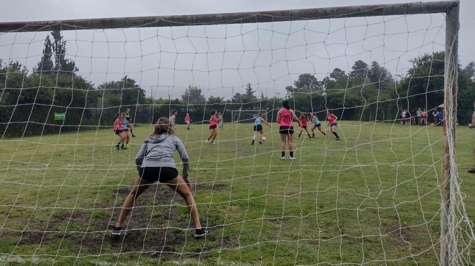 PASADO POR AGUA. Así se disputó el primer partido de fútbol femenino de las Intervillas 2022, en el club Tafí del Valle.