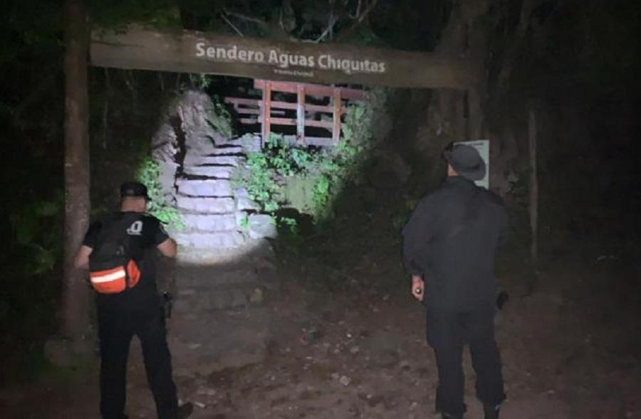 Ante la urgencia del caso, teniendo en cuenta las inclemencias del tiempo con lluvia y fuertes ráfagas de viento, los efectivos emprendieron la subida por el sendero de la cascada. El terreno se encontraba muy sinuoso y con barro, escalaron alrededor de tres kilómetros, logrando encontrar a ambos hombres.