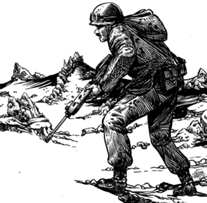Volaban las esquirlas por todos lados en mil fragmentos, lastimando a cada hombre a su paso. Un soldado inglés que ese día cumplía 17 años recibió una astilla en el ojo y murió al instante, a metros del frente, casi llegando a las líneas argentinas.