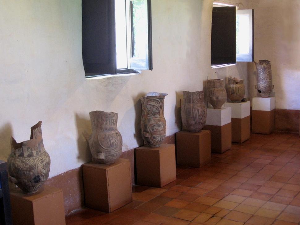 Las huellas de las comunidades originarias se muestran a partir de piedras, morteros y menhires. Expuestas una al lado de la otra, la colección también guarda una cantidad considerable de vasijas con diferentes patrones geométricos.
