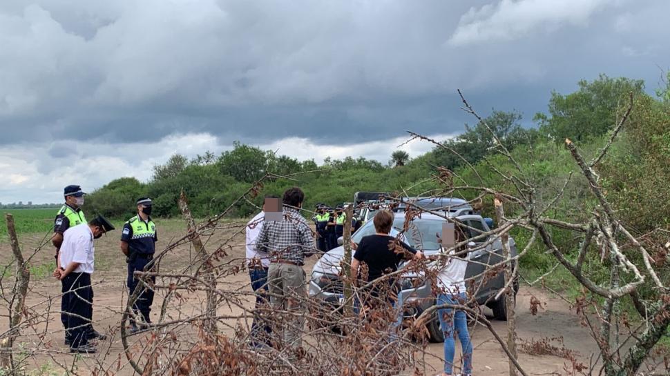 DISCUSIÓN EN PLENO CAMPO. Momento en que policías fueron a verificar la denuncia y el conflicto.