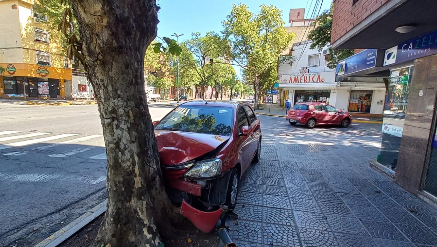 El vehículo fue abandonado sobre la vereda de avenida Avellaneda, después de que destrozó el semáforo, rompió parte de la vidriera de una empresa de seguros y se estrelló contra el árbol de la esquina.
