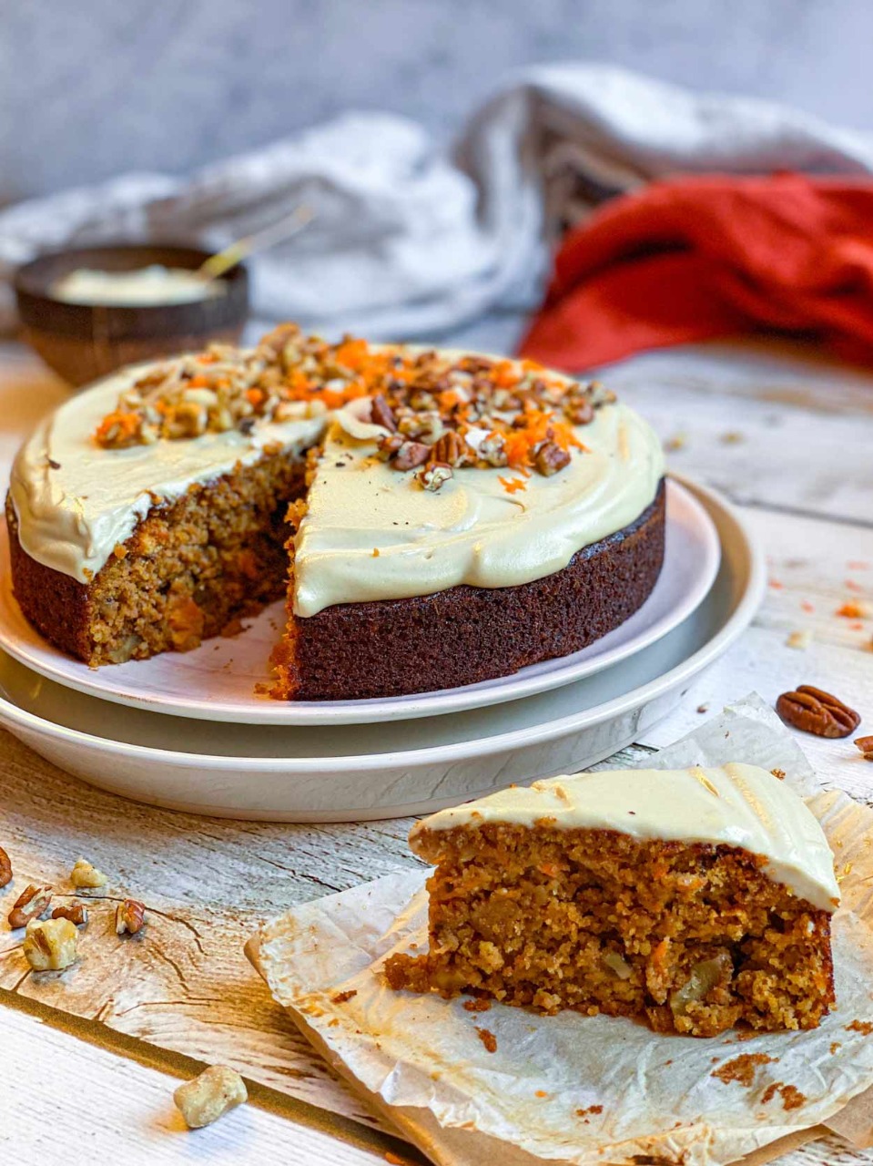 Torta de zanahoria, con cobertura de queso crema