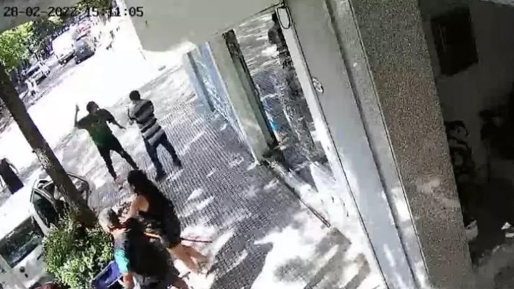 En el video se ve a la mujer salir de la panadería con un palo en la mano acompañada de su marido en el momento en que uno de los acusados golpeaba a un vecino que también había intervenido en el hecho. La víctima ya se había bajado del vehículo y caminaba zigzagueando por la vereda mientras todos discutían y repartían golpes.