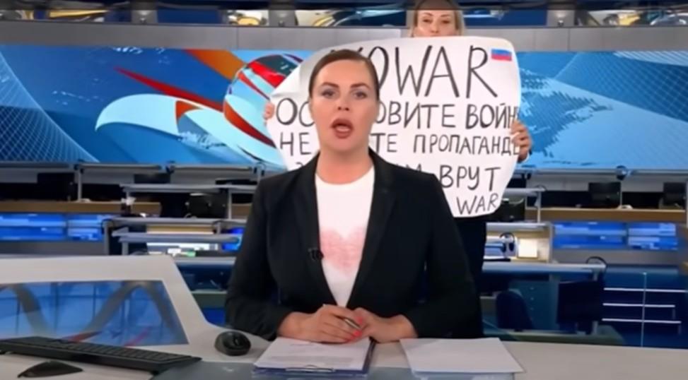 En pleno informativo, que se transmitía en vivo por Canal Uno de la televisión estatal rusa, irrumpió una manifestante antibélica con un cartel que se pronunciaba en contra de la guerra en Ucrania.