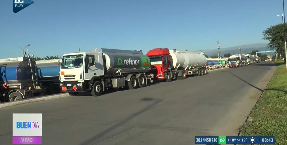Los choferes bloqueaban la planta de la empresa Refinor, en Banda de Río Salí, desde ayer, medida que afectó el abastecimiento de combustibles en las estaciones de servicio.