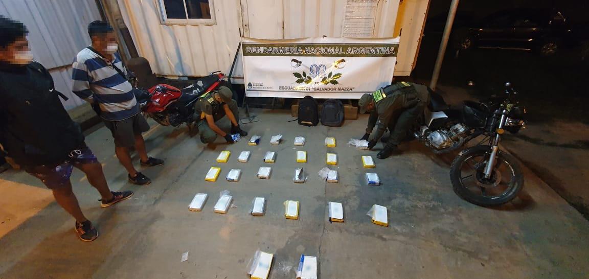 SALTA.- Efectivos del Escuadrón 61 se encontraban realizando tareas de patrullajes en la localidad de Salvador Mazza, cuando observaron dos motocicletas que circulaban en sentido Norte – Sur, cuyos conductores trasladaban dos mochilas de grandes dimensiones.