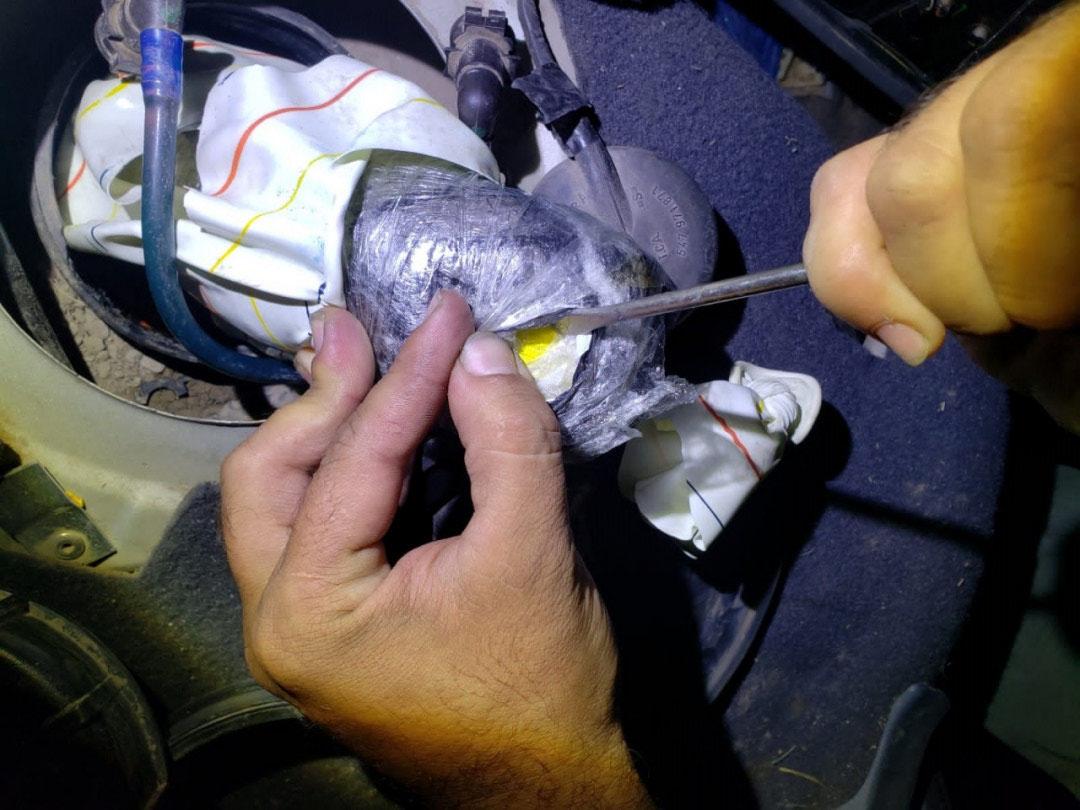 Observaron que la tapa de la bomba de nafta presentaba anomalías, por lo que al retirarla, confirmaron la existencia de 35 paquetes rectangulares de distintos tamaños, que tras ser sometidos a pruebas de campo Narcotest, las mismas arrojaron resultado positivo para cocaína con un peso total de 20,335 kg.