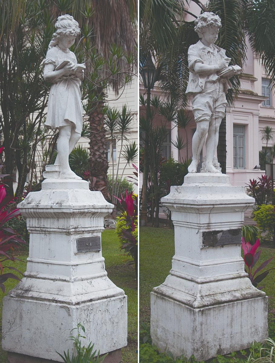 Si bien admitieron que se encuentran con demoras en las tareas de reparación, estiman que a partir del reintegro del escultor Díaz en 30 días más estaría completada la restauración de las dos esculturas: “La Lectura” y “La Escritura”. (Producción periodística Graciela Di Vico)