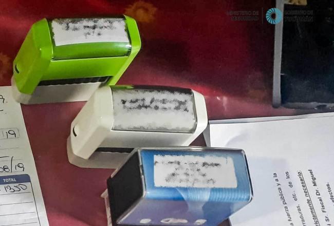 Dado todo esto, los uniformados realizaron dos allanamientos en la ciudad de Juan Bautista Alberdi, secuestrando un sello con el nombre y número de matrícula del denunciante y tres sellos con datos ilegítimos.