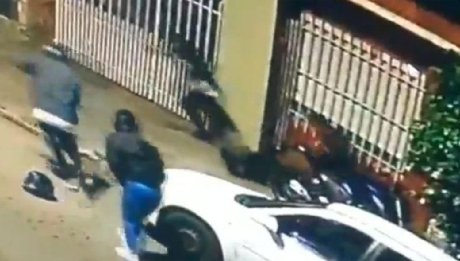 Como nunca nadie atendió la puerta, en el video se ve cómo, tras esperar unos minutos, tres delincuentes los interceptan de atrás.