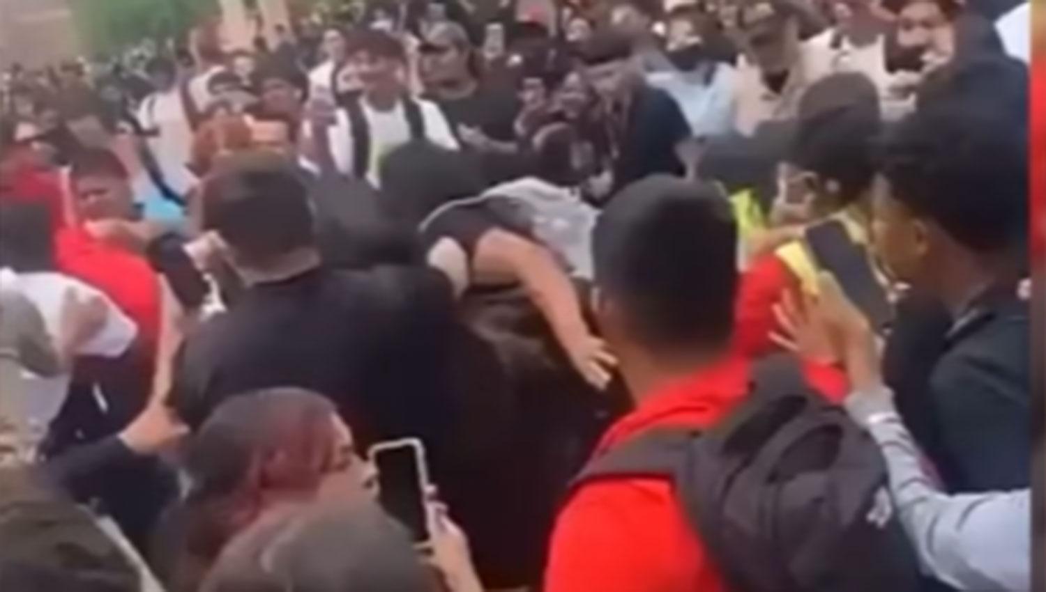 Se cree que por lo menos 30 estudiantes participaron en la pelea. En uno de los videos que se viralizó en las redes sociales se puede ver cómo se desarrolló el violento episodio ante los ojos de las autoridades del campus, quienes tuvieron que intervenir inmediatamente.