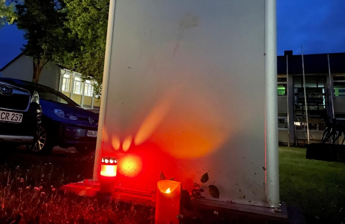 LA ESCUELA DE LAS VÍCTIMAS. Dos velas parpadeaban frente a la escuela Kaulbach de la ciudad a última hora del miércoles. REUTERS