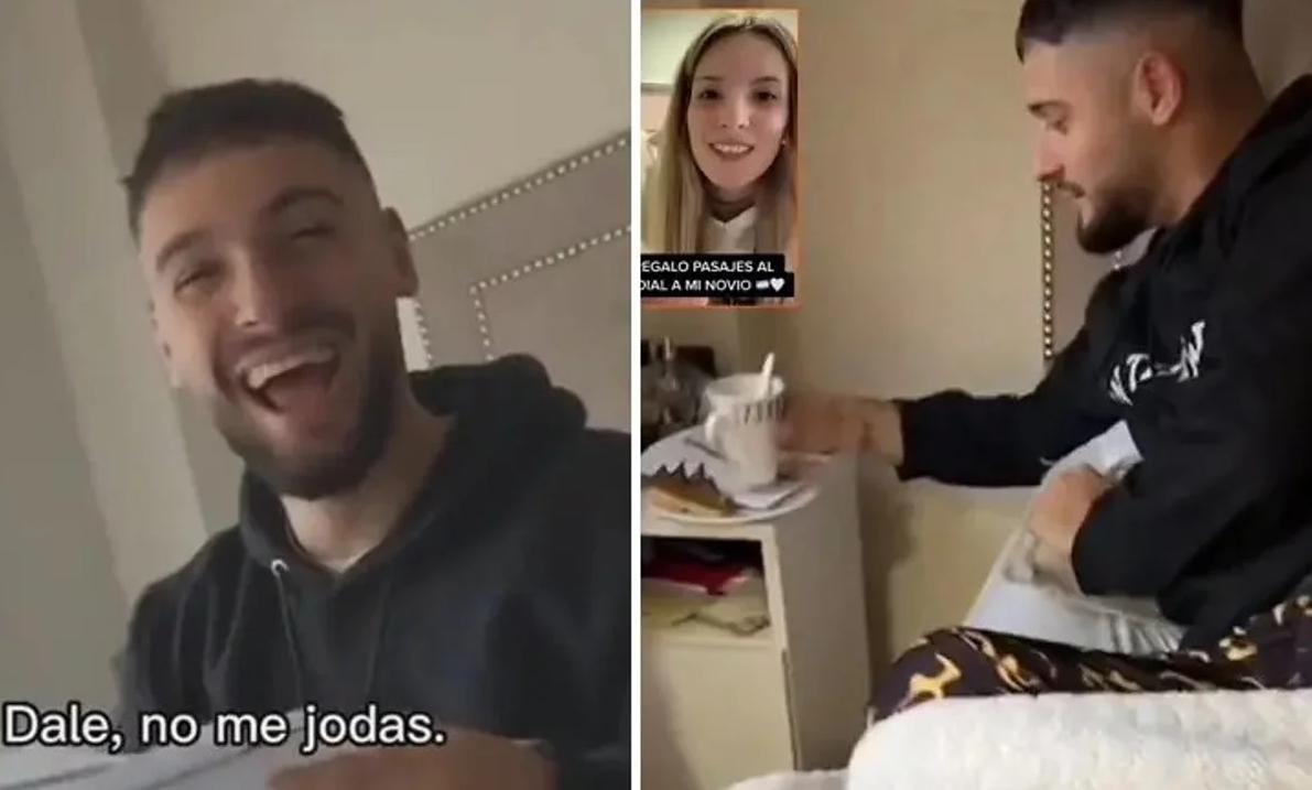 Le regaló pasajes a su novio para ir al Mundial de Qatar, filmó su reacción y se hizo viral TN