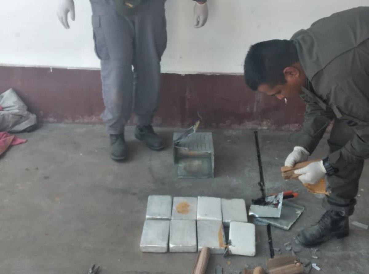 Ante tal situación, los gendarmes desarmaron la caja, con ayuda de una amoladora, donde pudieron extraer ocho paquetes rectangulares que contenían una sustancia blancuzca. Integrantes de Criminalística y Estudios Forenses llevaron a cabo las pruebas de campo Narcotest, las cuales confirmaron que se trataba de cocaína, con un peso total de 8 kilos 418 gramos.