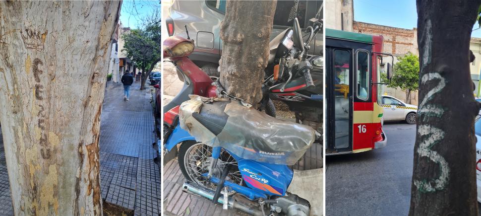 VANDALISMO. Esta es la parte desagradable, cuando se usan los árboles para atar motos o para escribir sobre su corteza.