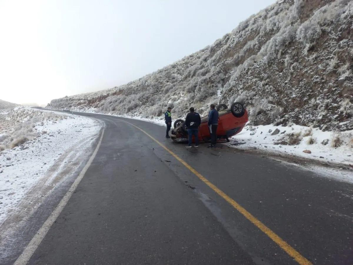 La nieve que sorpendió en plena priavera a Tafí del Valle no solo trajo sorpresa sino también un accidente de tránsito. Dos personas oriundas de Salta protagonizaron esta mañana un siniestro vial luego de volcar el automóvil en el que viajaban sobre la ruta 307, kilómetro 88. Se constató que solo hubo daños materiales y tanto el conductor como el pasajero se encuentran en buen estado de salud.