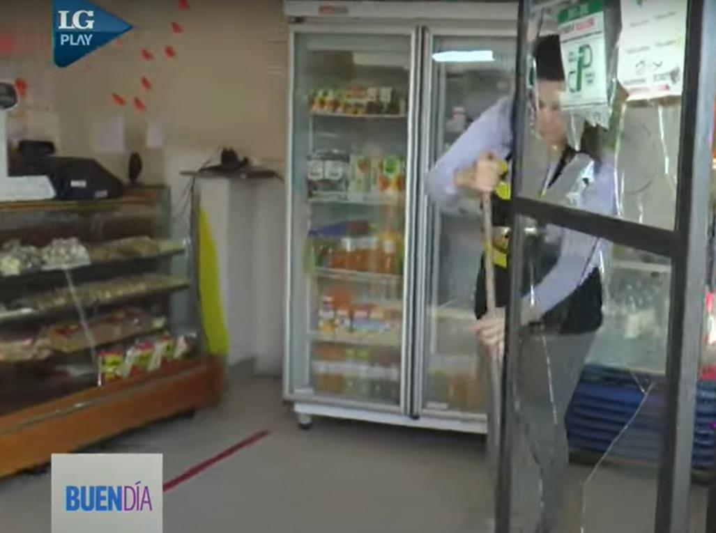 Ambas personas habían destruido el vidrio de la puerta principal para entrar al local. Al traspasar la abertura, el chico se hirió la pierna.