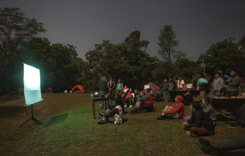 Más tarde, los visitantes escuchan con atención a Alberto Mansilla, director del Observatorio Astronómico de Ampimpa. Sentados en el césped en el centro del camping y con las miradas hacia el cielo, descubren curiosidades astronómicas gracias a un firmamento libre de contaminación lumínica. A sus costados, nogales, alisos, cebiles, pacarás y otros árboles se funden en la penumbra.