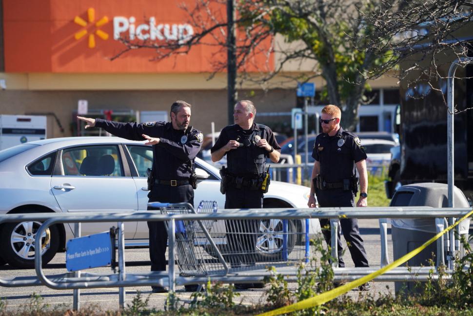 EN EL LUGAR DE LA BALACERA. Oficiales de policía en el estacionamiento después de un tiroteo masivo en un Walmart en Chesapeake. reuters