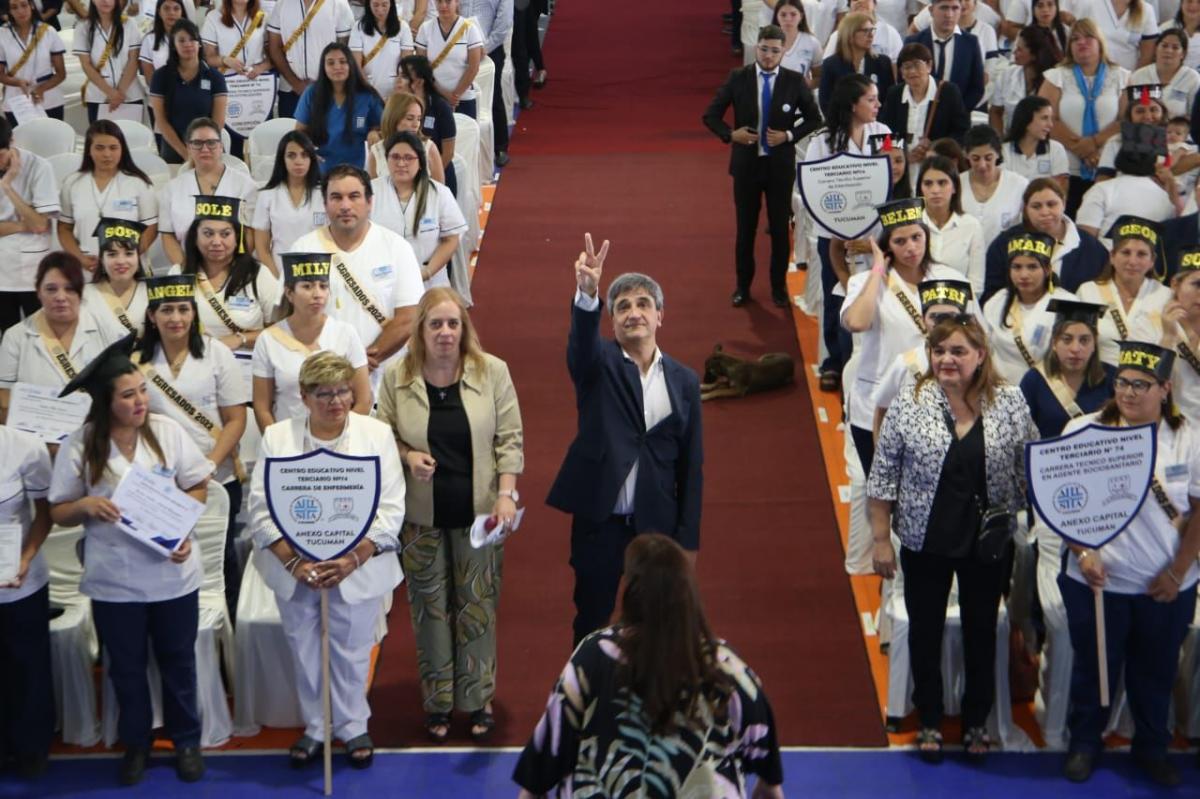 “En Tucumán hay decisión política para desarrollar la Enfermería. Por eso lo que pasa hoy acá, que están egresando 500 enfermeros de 16 escuelas distribuidas en toda la provincia, es mérito sobre todo de un gremio de la Sanidad que con René Ramirez se puso al hombro la tarea de formar más y mejores enfermeros y enfermeras para todo los tucumanos”, resaltó.