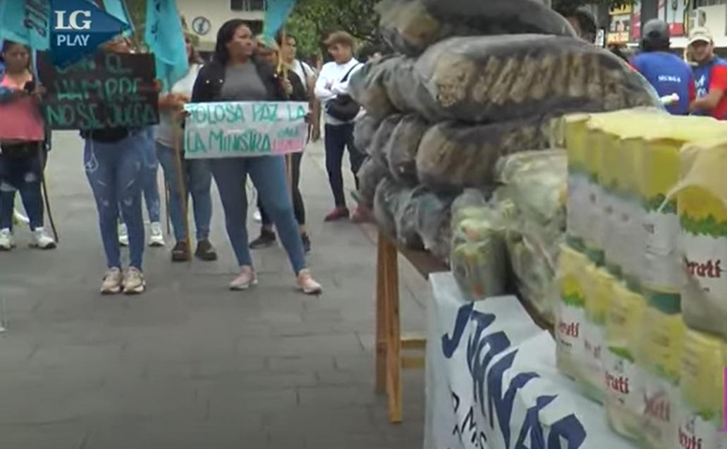 La organización Libres del Sur Territorial denunció que el Ministerio de Desarrollo Social nacional la mala calidad de alimentación en sus comedores y merenderos. En ese marco, se instaló una mesa cubierta de productos para exponer esa situación en la plaza Independencia.