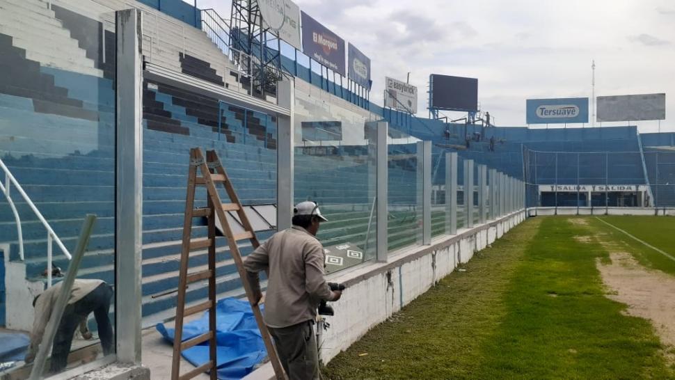 Las obras en el estadio con miras al debut de Atlético en la nueva temporada de la Liga Profesional no se toman vacaciones. Tras haber inaugurado el nuevo sistema de sonido y la voz del estadio en 2022, en los últimos días comenzó la instalación del acrílico que reemplazará a la vieja cerca olímpica sobre la tribuna en calle Laprida.