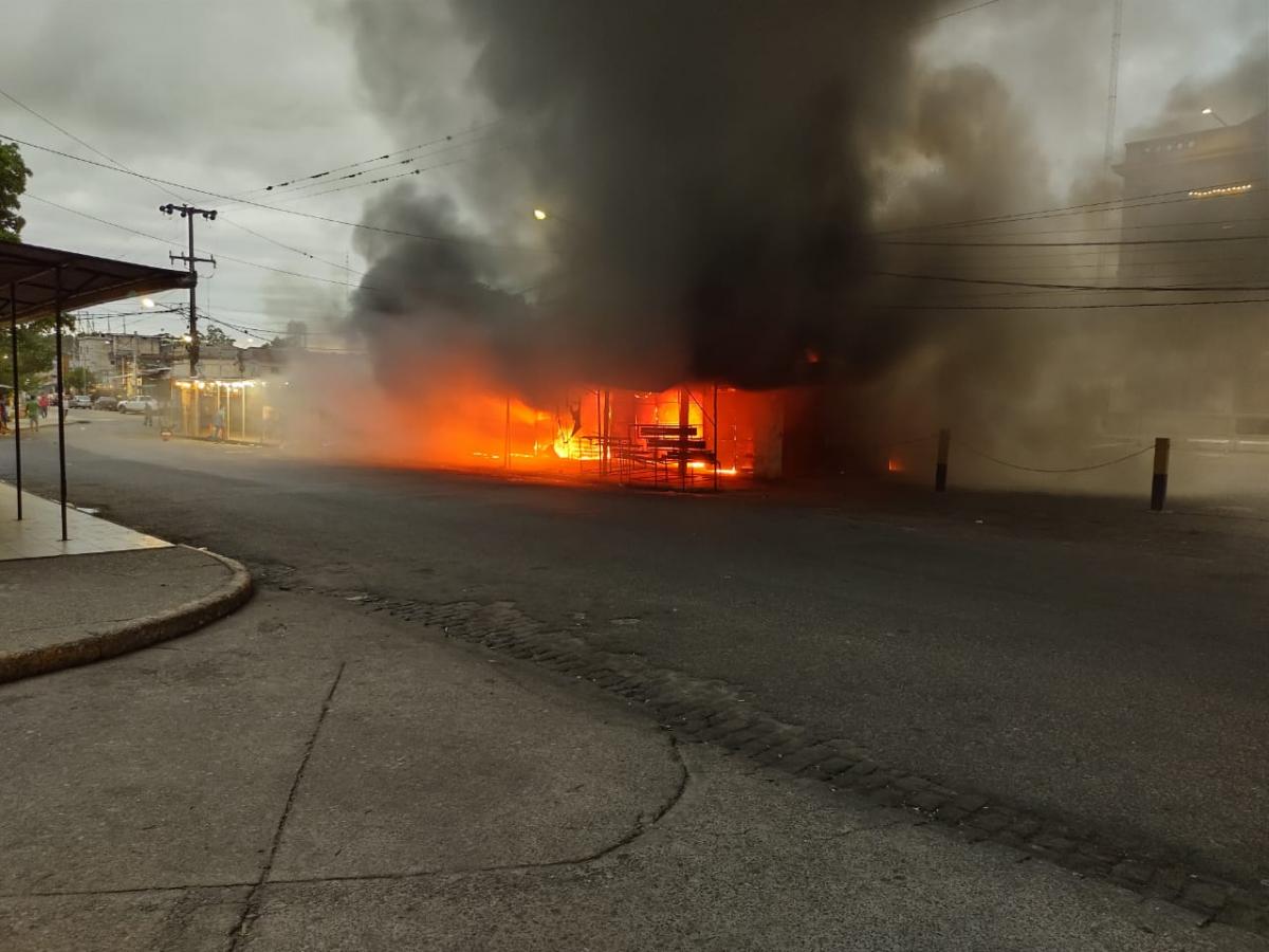 Desde Defensa Civil de la Capital, informaron que el fuego se inició en uno de los puestos de calle Charcas, primera cuadra, y consumió la totalidad de la mercadería de algunos puesteros, que se hicieron presentes en el lugar.