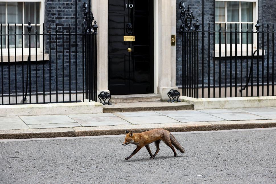 Un zorro gris pasea por Downing Street, en Londres, Gran Bretaña, minutos antes de la reunión semanal del gabinete británico. (Reuters)