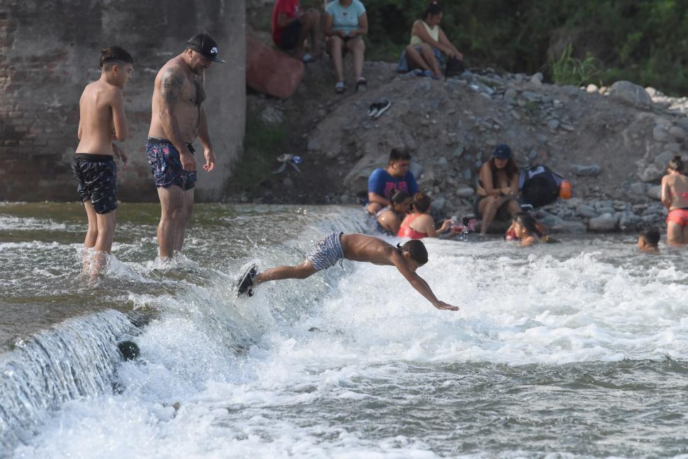 ZAMBULLIDA. Como si fuera una pileta olímpica, los chicos aprovechan una parte un poquito honda del río Lules. La Gaceta / fotos de Analía Jaramillo - Antonio Ferroni