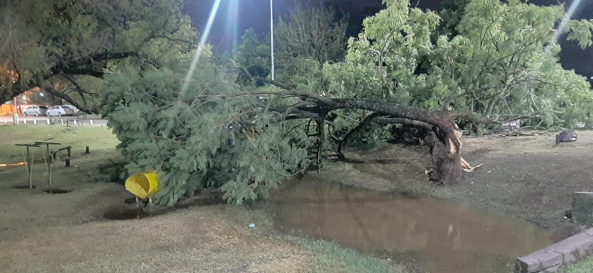 Por las fuertes ráfagas de vientos, en Yerba Buena se cayó un árbol sobre juegos infantiles. Afortunadamente no había niños jugando en ese momento y no hubo heridos.