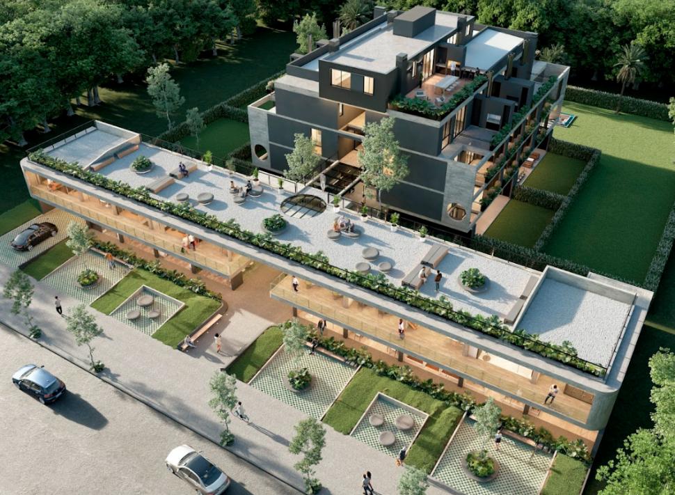 Alianza creativa = más y mejor: la unión de Link como desarrollador integral, Etéreo Arquitectos a cargo del diseño y Sigma de la construcción, permite que el proyecto se nutra de diferentes miradas de profesionales que le aportan a una identidad diferente y mayor calidad en todos los sentidos. El resultado de esta alianza creativa es un proyecto que conjuga el buen vivir, la dispersión y el trabajo en un mismo complejo. Oficinas, un paseo comercial, departamentos aterrazados y amenities indoor & outdoor conviven en un espacio de más de 5.000 m2 protagonizados por materiales nobles y un diseño contemporáneo, abierto al verde y luminoso.
