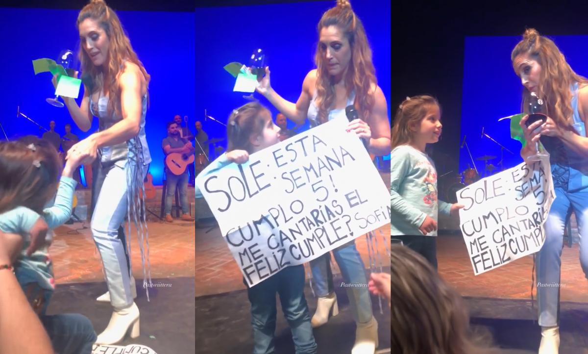 Se trata de Sofía, una pequeña de cuatro años fanática de la cantante. La niña asistió al show del teatro Coliseo, en el marco de la última gira de la “Sole”. En su nuevo espectáculo, la intérprete está presentando su último álbum, “Parte de mí”.